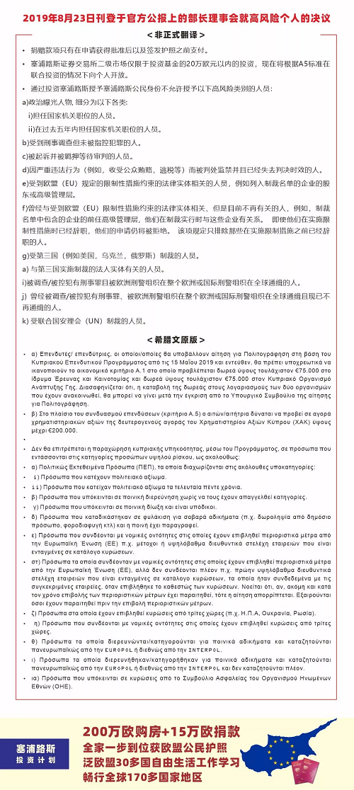 而上周再出消息,塞浦路斯部長理事會批準(zhǔn)了內(nèi)政部關(guān)于禁止高風(fēng)險個人獲