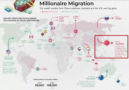 報告還顯示,在短短1年(2017-2018)的時間里,中國富豪的財富狀況變化并不大, 但選擇移民的人數卻陡增。有媒體解釋說,背后的主要邏輯是財富的流轉需求。