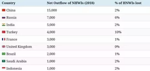 報告中顯示中國移民海外富豪人數榮登全球排名第一,比排名第二的俄羅斯整整高出一倍。