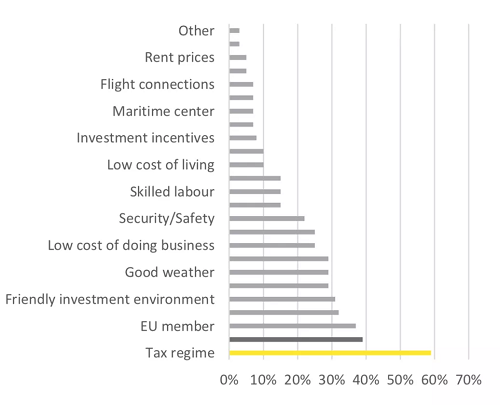 在調查中,59%的俄羅斯人反饋在這里定居是因為塞浦路斯的低稅率。39%的人是因為塞浦路斯的法律體系,37%因為塞浦路斯作為歐盟國在經商過程中帶來的便利。