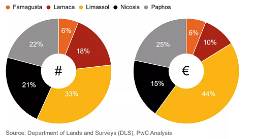按城市分布劃分,利馬索爾占42%,尼科西亞占27%,拉納卡占16%,帕福斯11%,法瑪古斯塔占4%。