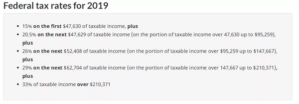 以加拿大官方的Federal Tax Rate表格(2019年)為例: