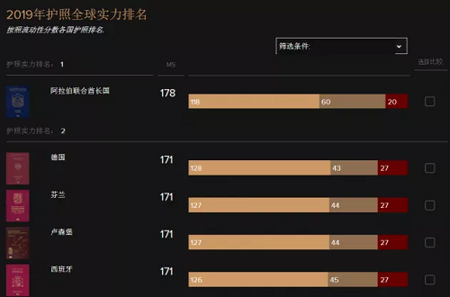 那么2019 年移民護照到底哪國強,能夠滿足高凈值人群的各項需求呢?根據世界知名的移民和居留權咨詢公司Arton Capital發布的2019護照全球實力排行榜。位列第一的是阿拉伯聯合酋長國的護照,其次是盧森堡、芬蘭和西班牙,以及丹麥、意大利、德國、荷蘭等。