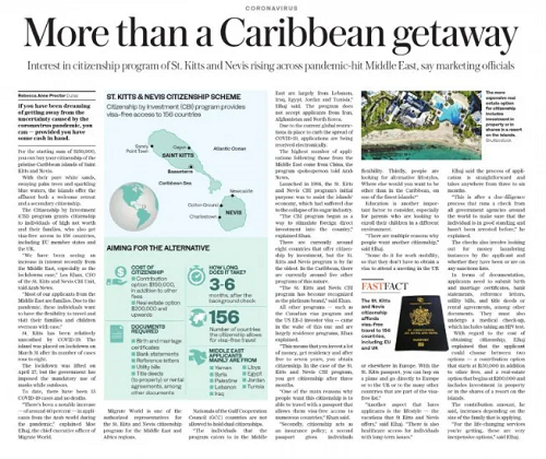 新聞中提到,一份有關于CBI項目的文件中明確表示,Covid-19導致眾多投資人對第二公民身份的需求增加,她們正在尋找一個可信程度高、功能齊全、經得起時間考驗的項目,而圣基茨護照剛好完全符合他們的需求。