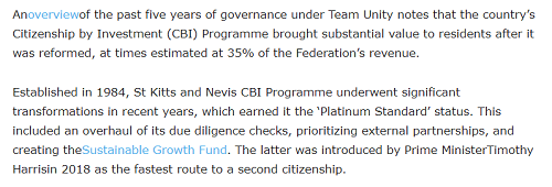 據thestkittsnevisobserver新聞6月2日報道,在由Timothy Harris總理帶領的團結政府領導下,CBI(投資入籍)項目在過去的五年里帶來了非常大的收益,有時甚至達到了政府收入的35%。