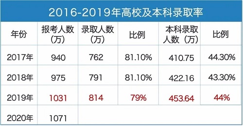 回看2019年高考,本科錄取率僅44%,本科一批錄取率僅6%,其中,211院校錄取率為2.41%,985院校錄取率僅0.79%,清華北大則低至0.03%??梢?,高考生們離名校太遠(yuǎn)了!