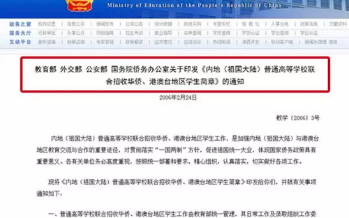 這是由中國四部委-教育部、外交部、公安部、國務(wù)院僑務(wù)辦公室2006年針對(duì)于海外華僑和港澳臺(tái)學(xué)生開設(shè)的全國統(tǒng)一考試的高考政策。