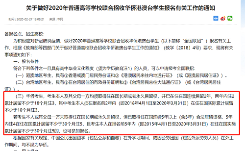 2018-19年對(duì)華僑生報(bào)考條件進(jìn)行了更嚴(yán)格的要求,增加了對(duì)華僑生父母的身份認(rèn)定,以及在住在國居留時(shí)間的限制。