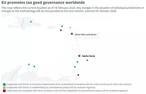 近日結(jié)束的歐盟經(jīng)濟(jì)與金融事務(wù)理事會(huì)(ECOFIN)是對(duì)各個(gè)離岸屬地的綜合考量,幾個(gè)傳統(tǒng)的“離岸天堂”被新加入了歐盟稅收黑名單,與此同時(shí),像圣基茨和尼維斯、黑山等國從灰名單轉(zhuǎn)向了白名單。