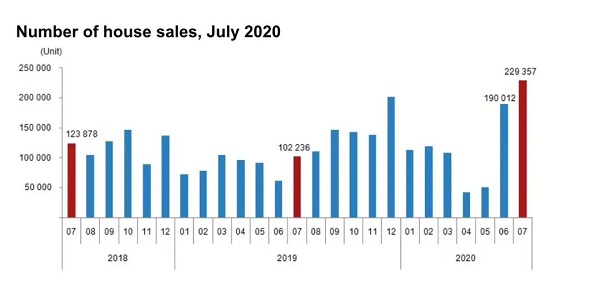 土耳其國家統計局(Turk Stat)最新發布的數據顯示,2020年7月,土耳其售出了229,357套房屋,相當于6月和5月的總和,而6月比5月增長了273%,與2019年同期相比增長了209.7%。6月土耳其全面復工復產后,開通大部分國際航線,整體數據看7月房產銷售量明顯增加。