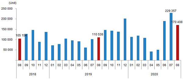 土耳其國(guó)家統(tǒng)計(jì)局(Turk Stat)最新發(fā)布的數(shù)據(jù)顯示,2020年8月,土耳其售出了170408套房屋,同比去年8月增長(zhǎng)了54.2%,1-8月份總交易同比去年增長(zhǎng)42.6%;