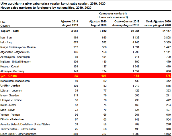 2020年8月,外國(guó)投資者在土耳其總共購(gòu)買了3893套房產(chǎn)。