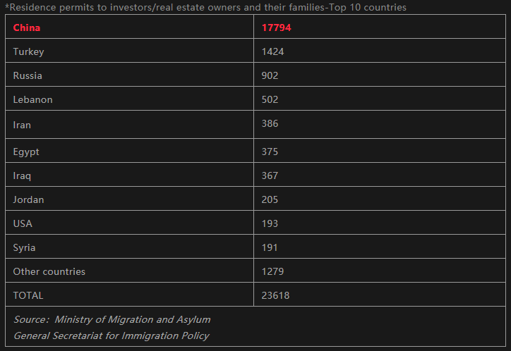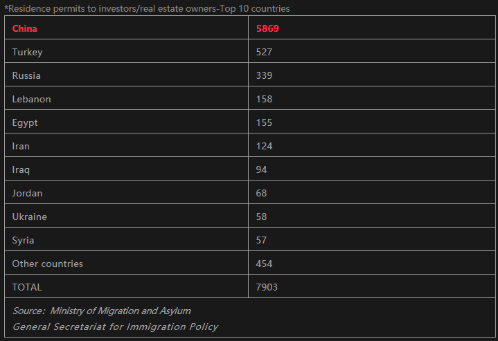 希臘三代移民政策,附屬申請人數中國仍舊位于第一位