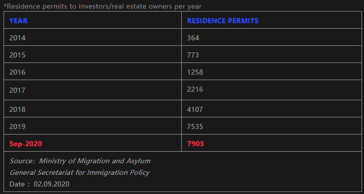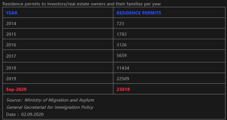 根據希臘移民局官方數據顯示,截止到2020年9月,希臘政府一共為主申請人簽發永久居留許可達7903份,累計向23618位申請人(投資者及家庭附屬成員)發放永居許可,2020年希臘政府出臺多項法案措施,推動網絡快捷高效辦理方式,為希臘黃金簽證再添亮色。