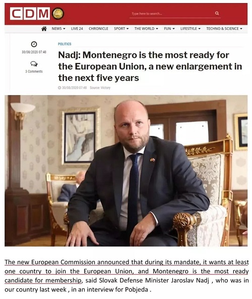 新一屆歐盟委員會2019年產(chǎn)生,歐盟成員國斯洛伐克國防部長雅羅斯拉夫· 納奇(Jaroslav Nad)在接受媒體采時表示:“新的歐盟委員會宣布,在其任期內(nèi),希望至少一個國家加入歐盟,黑山是最有機會加入歐盟的候選國?!币簿褪钦f,在2024年之前,黑山是最有希望加入歐盟的國家。