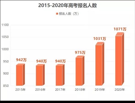 2020年,我國高考報名人數達到了1071萬人,創歷史新高。但數據統計,按照往年各省的錄取率來算,在2020年高考的1071萬名考生中,將有近600多萬考生無緣本科,近200萬考生連大學都上不了!