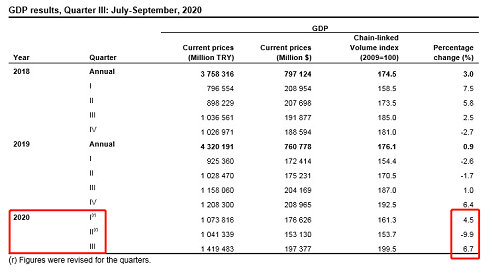 根據土耳其統計研究所(TurkStat)11月30日發布的數據,土耳其的經濟在7月至9月季度表現超出了預期,在財政刺激措施和解除與新冠有關的封鎖措施的推動下,不懼疫情,逆勢大增!