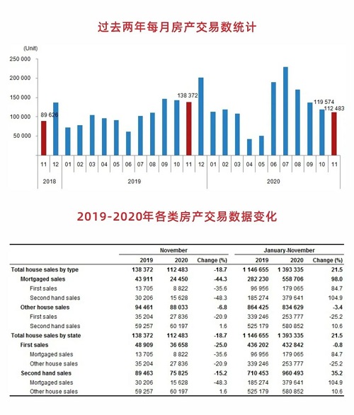 2020年11月外國投資者房產交易為4962宗,同比去年增長了24.4%;