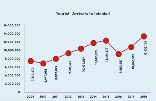 大多數人可能不知道,土耳其在游客人數方面排名世界第六,在旅游收入方面排名第14。旅游業是土耳其的主要收入來源。在2018年11月伊斯坦布爾進入世界一線城市行列后,土耳其旅游業更是迅猛發展。2019年旅游收入同比增長17.0%,達到345.2億美元,土耳其入境游客人數達到5186萬人次。