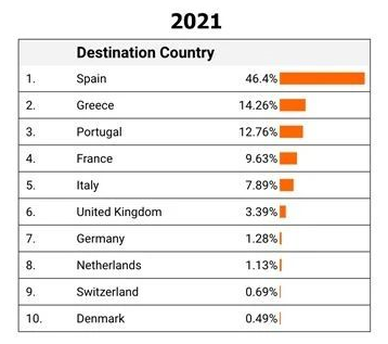 在一份關于2021年夏天(6月1日~8月31日)歐洲境內計劃旅行數據的分析報告中,希臘成為僅次于西班牙的第二大旅游目的地,有14.26%的航班預訂飛往希臘。