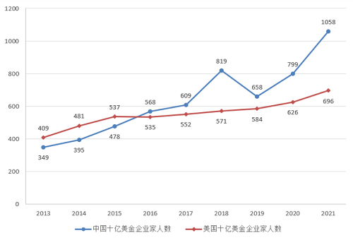 在過去的一年里,中國新增了259位十億美金企業家,成為世界上第一個擁有1000位已知十億美金企業家的國家,超過了排在其后的美國、印度和德國三個國家的總和。在過去5年里,中國新增了490位十億美金企業家,而美國僅新增了160位。