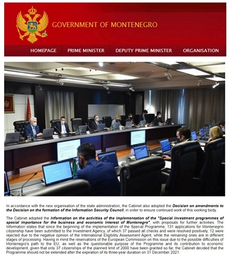 然而就在近日,黑山政府針對黑山推出的投資入籍計劃發表了一份聲明:提議黑山投資入籍計劃在原定的三年運作期結束后(即2021年12月31日)將不再延期。另外,將會對“可以獲得黑山國籍的一個新系統”進行評估,“把現行的經濟公民身份項目改為技術移民入籍項目”。