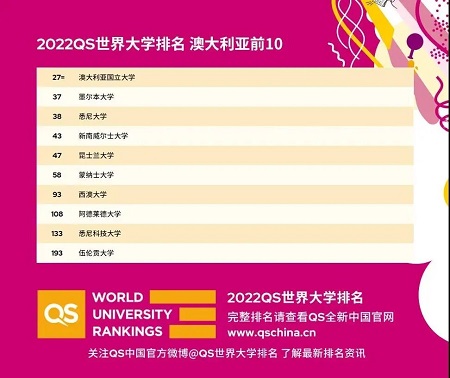 ● 澳大利亞排名前四的大學今年的排名較去年都有所上升。澳大利亞國立大學重回世界前30名的榜單,位列第27名。