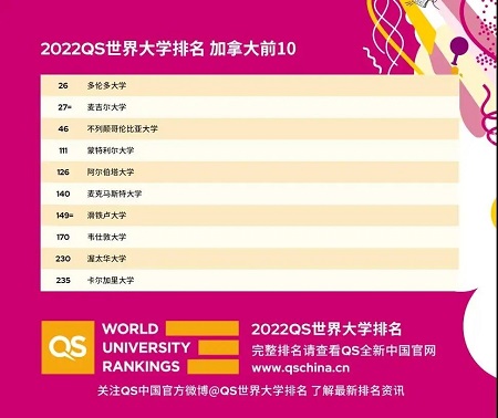 ● 加拿大的大學開始扭轉停滯不前的局面,其上榜的大學超過半數排名上升。今年的QS世界大學排名是六年以來,首次有兩所加拿大大學共同進入前三十名。其中領先的大學依然是多倫多大學(第26名,下降1名)。