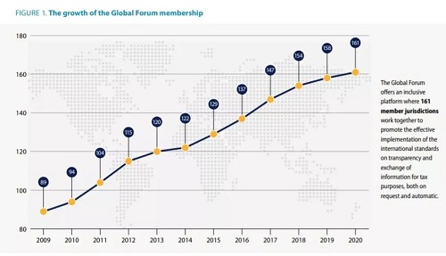 全球論壇是稅收透明和信息共享的多邊框架,2020年,全球論壇中共吸納161個成員。通過自愿披露計劃和離岸稅收調查,在全球范圍內增加了1070億歐元的額外收入(包含稅收、利息和罰款)。