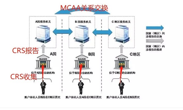 簡單來說,金融機構根據CRS的標準將搜集來的信息報告給國家稅務機關,國家稅務機關通過MCAA來進行信息交流。