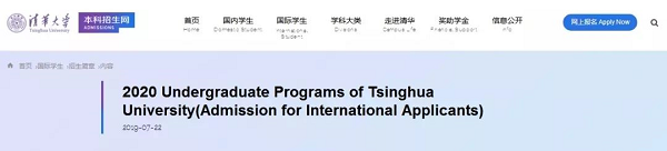 早前,清華大學官網(wǎng)就公布了《2020年清華大學國際學生(本科)招生簡章》, 招收外籍華人在內(nèi)的國際學生,并采用“申請-審核”制。