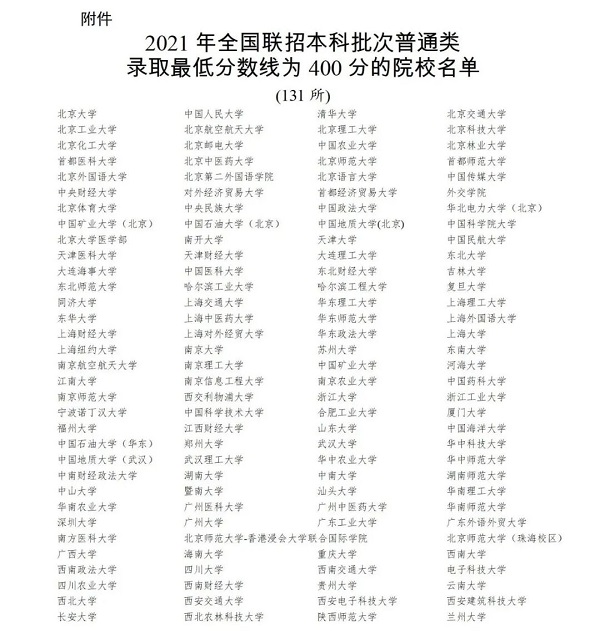 如果在華僑生聯(lián)考中考到400分的成績,就可以報考以下這些學校了。