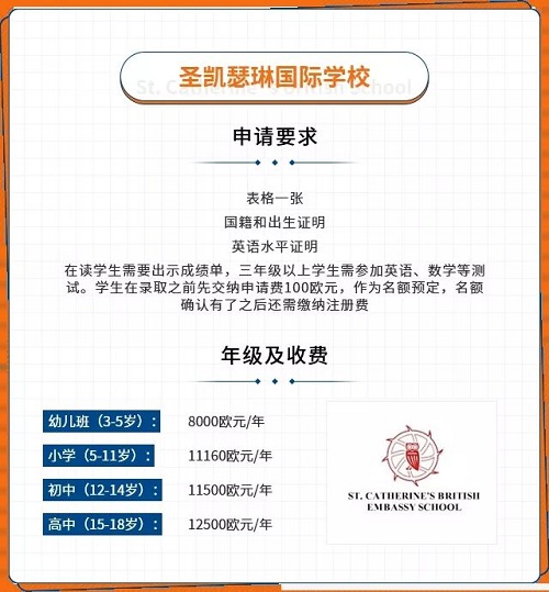 圣凱瑟琳St.Catherine's British School是一著名連鎖國際學校,是英國獨立學校委員會(COBIS)成員。該校成立于1956年。學校成立初期主要是服務于英國和英聯邦國家的子女。是一非盈利機構。該校現是希臘規模最大的一個國際學校,在校生來自54個學校,人數多達1100余人。學校內設幼兒園、小學、中學和高中。高中后兩年采用IB課程。該校5歲以上的學生除了各年級特定的課程,均需接受下列課程的學習:英語、數學、科學、設計、技術、信息和通訊技術、地理、歷史、藝術、音樂和體育。兩年級開始選學一門外語(希臘語或法語)。學校非常重視有關駐在國希臘的歷史等介紹,經常組織參觀。該校教學嚴謹,注重學生的全面發展。校舍寬敞,該設施完備,體育場地齊全,有劇場和若干個實驗室,有泳池、足球和籃球場。在校生均需穿校服。是希臘最受歡迎的國際學校。