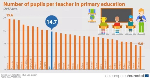 此外,歐盟國家平均師生比例為1:14.7,小班教學的教育理念,讓每個孩子都能得到關注。