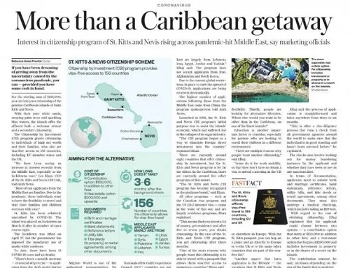 而據(jù)《阿拉伯新聞網(wǎng)》報(bào)道,在疫情期間,市場(chǎng)上對(duì)于圣基茨身份的需求不減反增。很多來(lái)自中東地區(qū)的投資人辦理了圣基茨身份,人數(shù)一度激增40%。