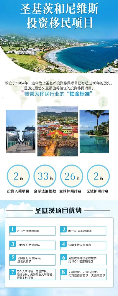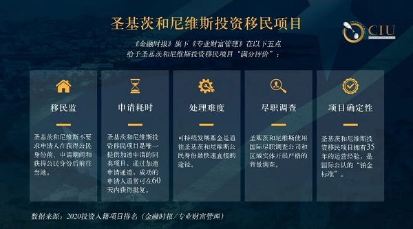 金融時報旗下《專業財富管理》雜志曾發布報告稱,圣基茨CBI是世界最佳的公民身份投資計劃之一,是獲取公民時間最快的,提供最值得信賴的、最具家庭吸引力的CBI計劃之一。