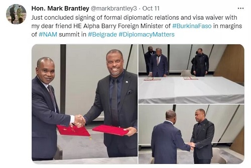 據新聞報道,圣基茨和尼維斯外交部長Mark Brantley先生和布基納法索外交部長Alpha Barry先生,于10月10日在塞爾維亞的貝爾格萊德正式確立了兩國外交關系,并簽署了雙方簽證豁免協議。