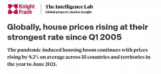 近日,萊坊(Knight Frank)發布了全球房價報告,在參與調查的55個國家和地區中,全球平均房價上漲了9.2%,為2005年以來最大漲幅,其中發展中國家平均房價下降了4.9%,而發達國家平均房價上漲了12%。