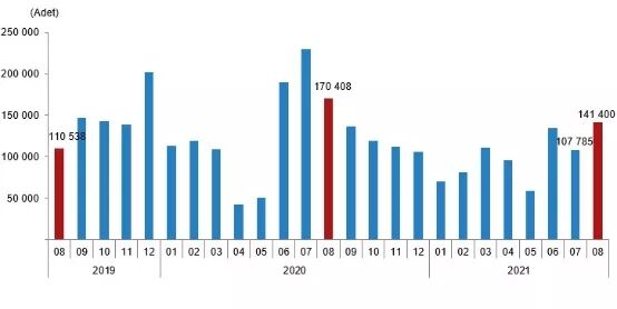 8月份,土耳其的房屋銷售總量為14.14萬套,銷量比上月增長了31.%。
