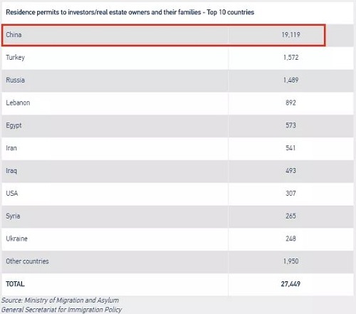 至此,希臘累計向9129組家庭發放了黃金居留簽證,其中中國家庭占6274組,占比69%。