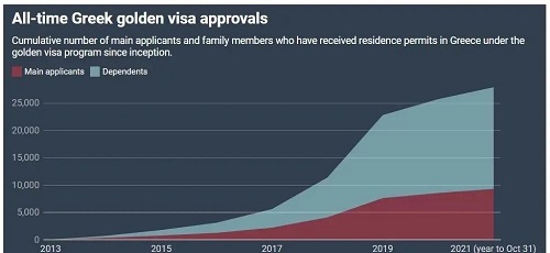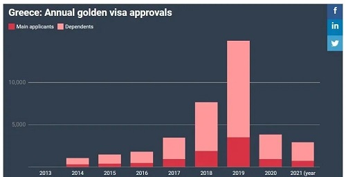 如果希臘能夠繼續延續這種速度的審理,該項目2021年將會有1,100名主申請人獲得黃金簽證。