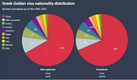 此外,根據希臘移民局公布的最新數據,截至2021年11月份,希臘共計給9473個投資者,連同他們的18,938名家屬,簽發了希臘黃金簽證。