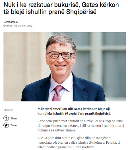 事實上,這已經不是比爾·蓋茨第一次想買希臘小島了。早在2009年,他就出價1.2億歐元要從希臘已故船王奧納西斯的唯一幸存后代、孫女雅典娜手中買下希臘旅游勝地斯科皮奧斯島,可惜后來計劃因故被擱置。但從他接二連三布局希臘的動作不難看出,比爾·蓋茨對希臘的愛始終未變。