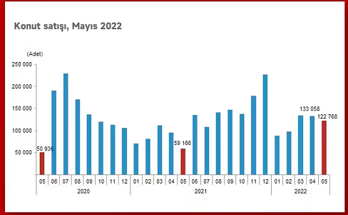 5月土耳其房屋銷售量同比增長107.5%,達(dá)到122768套。伊斯坦布爾的房屋銷售份額最高,為 22148 套房屋,占比 18.0%。