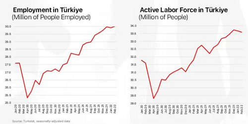 自2020年4月疫情沖擊勞動力市場以來,導(dǎo)致全球數(shù)百萬人失業(yè)。土耳其不僅彌補(bǔ)了疫情期間的失業(yè),而且隨著勞動力的顯著增加,也吸收了新進(jìn)入者。