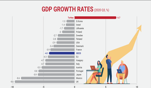 根據土耳其統計局最新數據顯示,在全球新冠疫情肆虐的大背景下,土耳其GDP在2021年上漲11%。其增長率與G20、經合組織和歐盟成員國相比,漲幅最高。