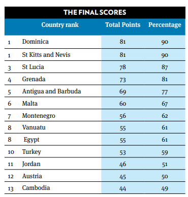 2022年8月22日,英國《金融時報》專業財富管理 (PWM) 雜志發布了第六版《全球公民指南:CBI 指數》。