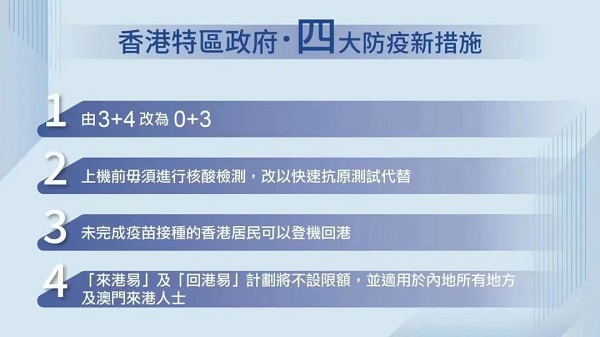 ? 取消未接種疫苗的香港居民不能登機(jī)的限制:未接種疫苗的香港居民可返港,但抵港后要完成疫苗接種。