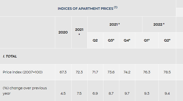 2022年第二季度,希臘全國的住宅價格較去年同期增長9.4%;