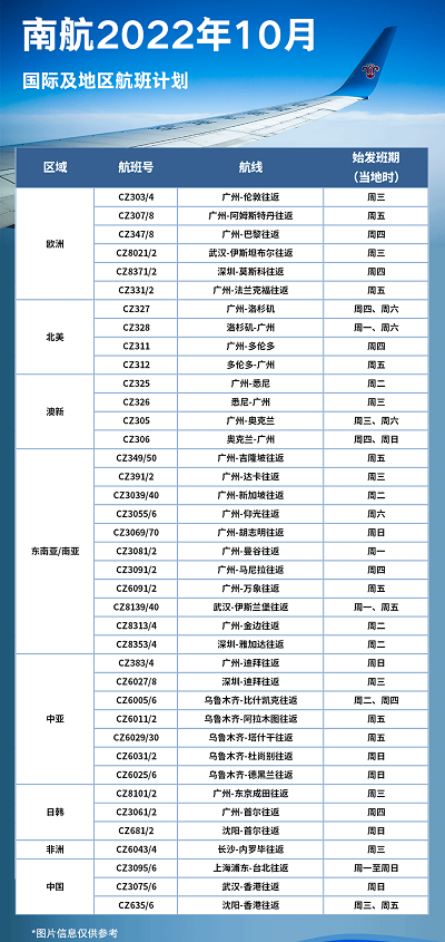 中國南方航空的10月計(jì)劃如下。